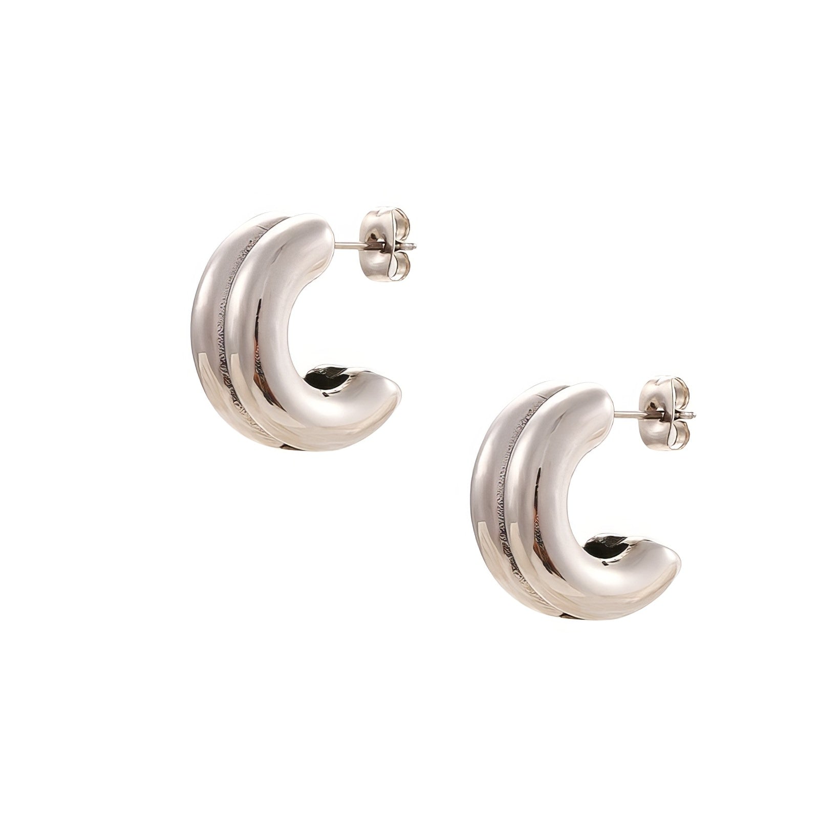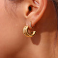 Bold, double-banded hoop earrings in polished 18K gold-plated stainless steel, designed with a chunky silhouette.