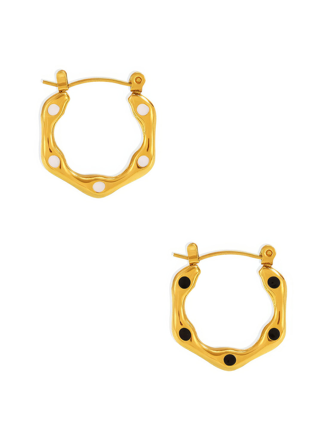 Rounded Hexagon Hoop Earrings With Resin Dots