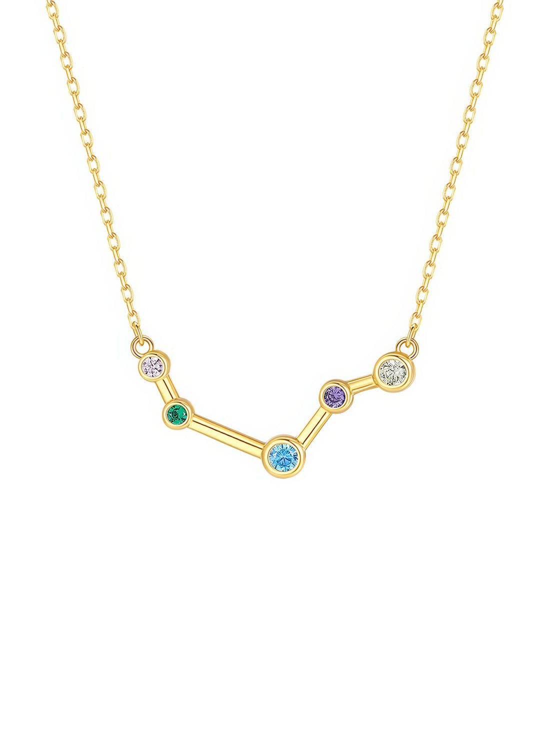 Aquarius constellation necklace with colorful cubic zirconia stones, crafted from sterling silver (S925) and plated...